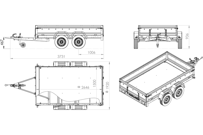 La remorque à deux essieux UNITRAILER EXPERT 2615/2 n’est pas seulement destinée aux professionnels, conçue pour les travaux difficiles et une utilisation quotidienne. PTAC 750 kg, 2 essieux non freinés, dimensions de 2640 x 1500 mm.